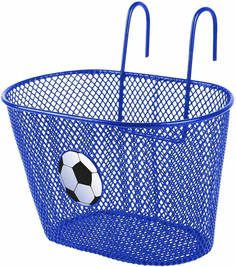 Flot cykelkurv med et billede af en smart fodbold. Kurven har en utrolig flot blå farve.