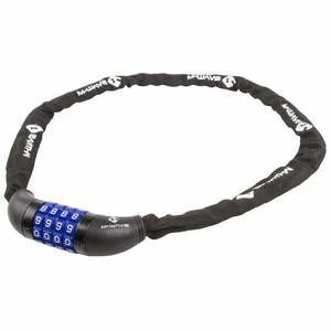 En virkelig god og robust kædelås med kode. Kæden er overtrukket med et vandafvisende stof der også holder snavs væk fra kæden.